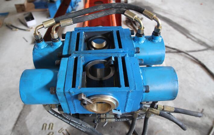 自動裝卸鉆桿機構(gòu)是套特定的夾持器,有兩組油缸組成,各油缸之間采用軟膠管鏈接。通過系統(tǒng)供油→油缸加緊鉆桿→液壓馬達帶動輸出軸旋轉(zhuǎn)的方式實現(xiàn)自動裝卸鉆桿的整套動作。架柱式液壓鉆機自動裝卸鉆桿的這個功能,除了節(jié)省勞動力外,還能顯著減少鉆桿更換時間,從而提高鉆孔效率。