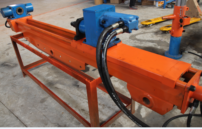 朔州山陰縣煤礦打探水探瓦斯孔120米左右,多方比較衡量選用的ZYJ-860/150架柱式液壓回轉(zhuǎn)鉆機(jī)。架柱式液壓回轉(zhuǎn)鉆機(jī)是一種全液壓馬達(dá)回轉(zhuǎn)式鉆孔設(shè)備,液壓馬達(dá)通過回轉(zhuǎn)裝置的輸出軸帶動(dòng)鉆桿、鉆頭旋轉(zhuǎn),從而實(shí)現(xiàn)了切削破巖。該鉆機(jī)破巖速度快,鉆程長(zhǎng)省時(shí)省力,工作效率高??摄@全煤層近水平定向孔,時(shí)效可達(dá)20米/時(shí)。山陰礦上用著很順手,鉆孔效率高成孔也好,探測(cè)施工很順利。ZYJ860液壓架柱式鉆機(jī),對(duì)山陰煤礦來說,是對(duì)的探水探瓦斯鉆機(jī)。