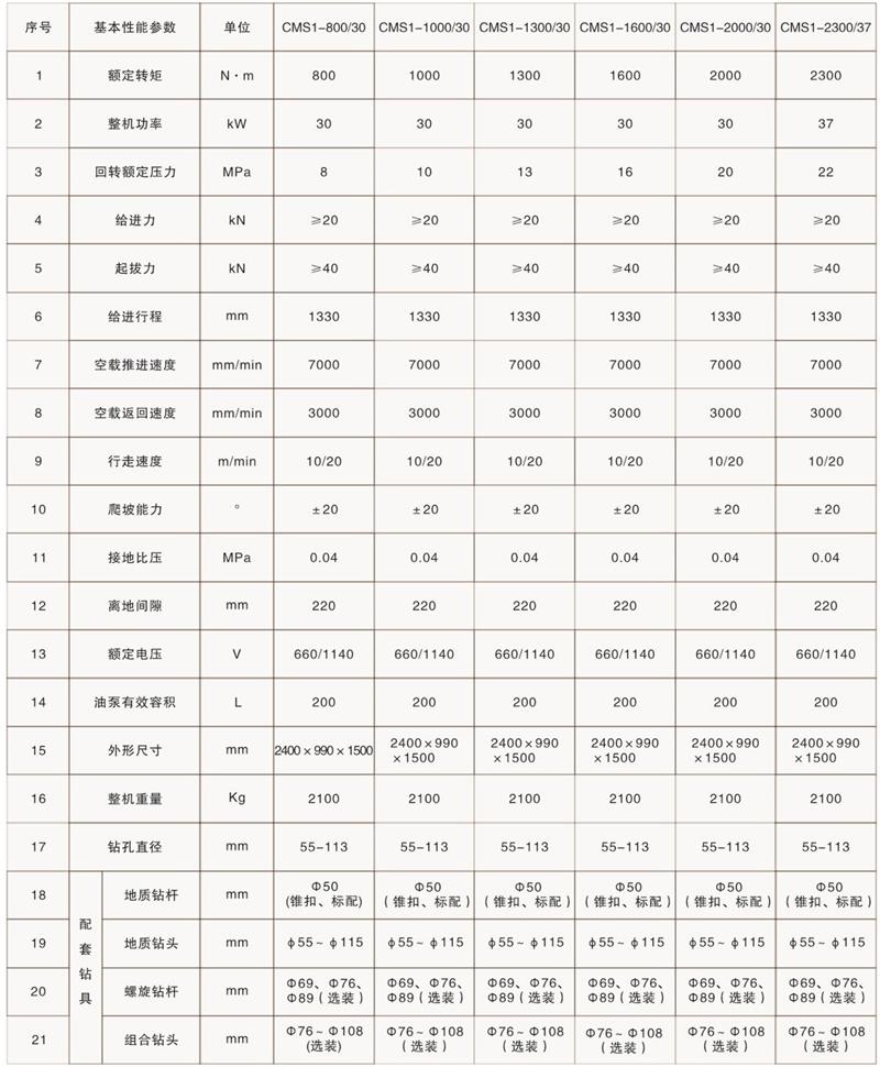 CMS1-1200/30型煤礦用深孔鉆車產(chǎn)品介紹 類別:煤礦深孔鉆車 型號:CMS1-1200/30 品牌:河北啟睿 用途:CMS1-1200/30型煤礦用深孔鉆車是新一代履帶行走的探水、探瓦斯、 探斷層、放頂、注水等的鉆孔設(shè)備,主要用于掘進工作面有防突措施要求 的在軟巖或煤層中實施密集形鉆孔,也適用于其他場合。該設(shè)備具有結(jié)構(gòu) 緊湊、操作靈活、機動性好、全斷面作業(yè)、安全性能好、一機多用等特點。 除完成探水、探瓦斯工作外,還可鉆進復(fù)雜地層。它配套普通擴孔鉆頭等 鉆具可進行回轉(zhuǎn)鉆進。